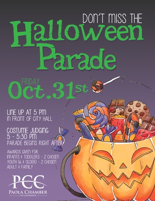 Businesses, clubs, and organizations may set up on the Square to pass out candy. If your organization is new to this event and would like to participate, please contact April at 913-294-4335, or email april@paolachamber.org for instructions.